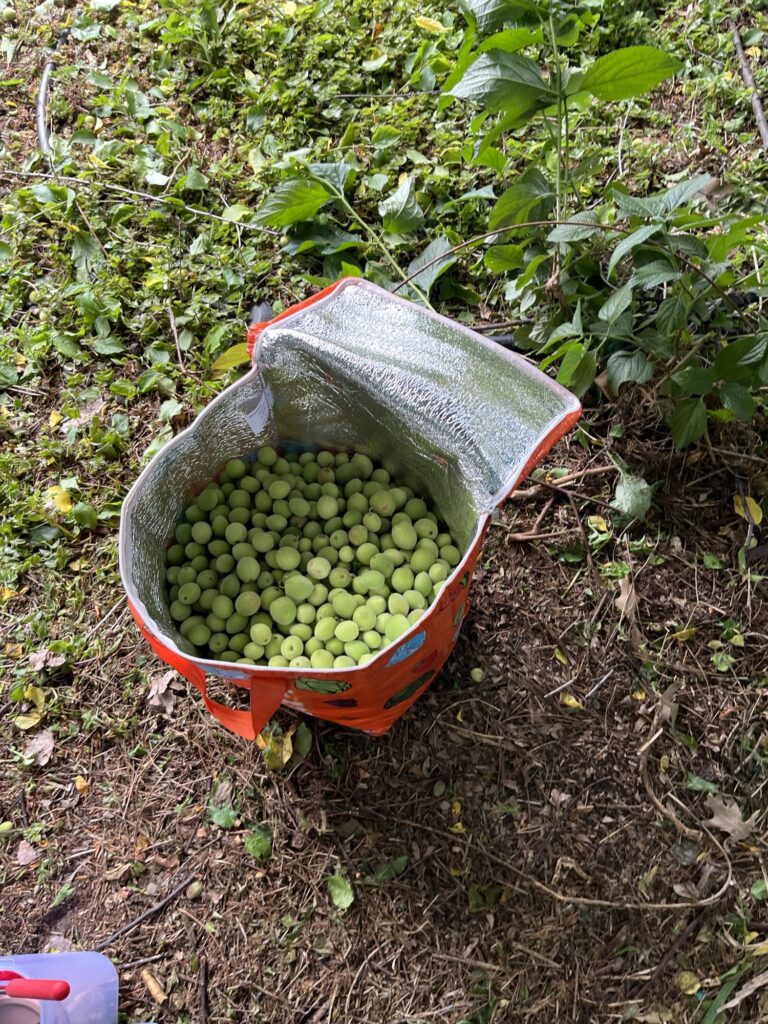 첫 번째 다녀간 팀이 쓸어간건지 어쩐건지 알이 큰 매실은 별로 없었지만 그래도 오밀조밀한 녀석들이 꽤 이쁘게 달려있었어요. 어른 넷 아이 둘이서 부지런히 8키로 정도를 따왔습니당.